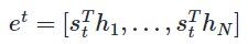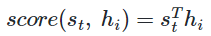 St와 encoder의 i 번째 hidden state 의 attention score계산 ~