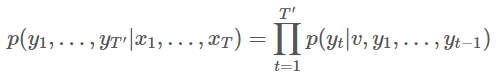 좌변은 x들 (입력 문장) 들어왔을 떄 y들 (출력 문장)에 대한 조건부 확률